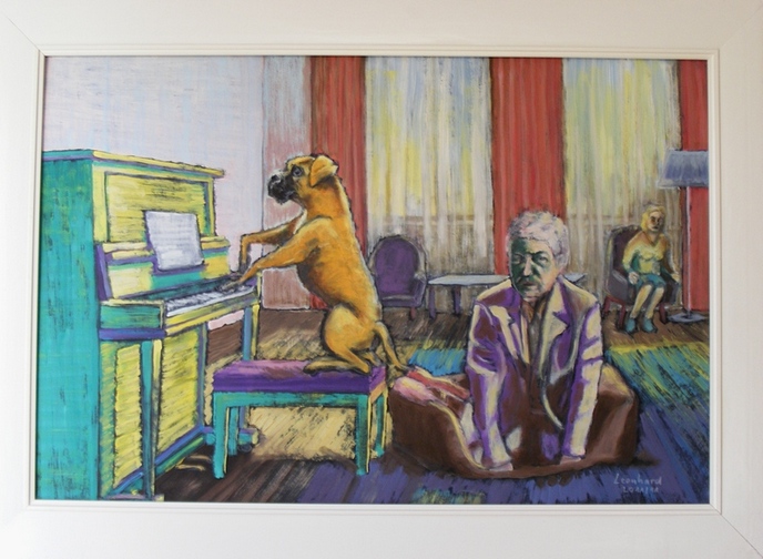 Hund spielt Klaviersonate für den Meister